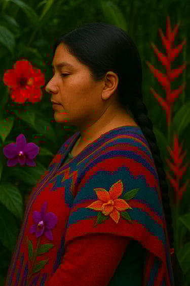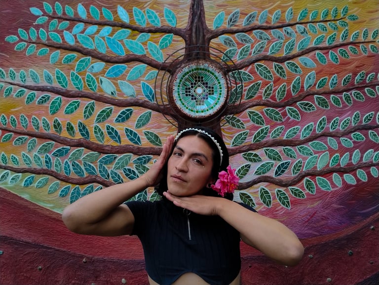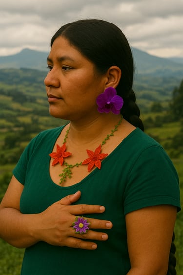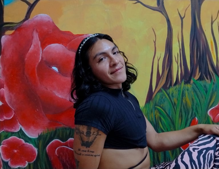 Orquídea, es una mujer trans indígena de 32 años, perteneciente a los pueblos Kamëntsá-Inga del Putumayo. Su vida ha estado marcada por el desplazamiento forzado, que la llevó a habitar el territorio de Nariño, donde reconstruyó no solo un lugar desde el cual vivir, sino también una forma de nombrarse. Su identidad trans se entrelaza con una profunda conexión con la naturaleza, y en particular con las flores, que colecciona. Su nombre social, Orquídea, no es una elección casual: responde a la diversidad, la resiliencia y la belleza particular de esta flor, con la que se identifica por su capacidad de transformarse sin perder su esencia. Orquídea escribe poemas como quien siembra palabras en la tierra. En sus propias palabras: “Soy Orquídea, la flor de la transformación, la que está en constante cambio, la que nace y se renueva constantemente”