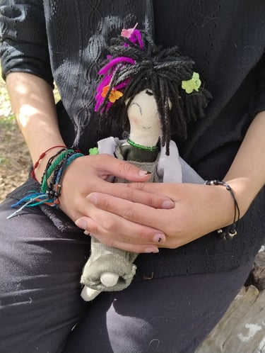 Lxs quitapesares tienen para mis dos sentidos en mi vida y experiencia: el primero, que alguien/algo no sea perfecto no sea perfecto no significa que merezca menos respeto, mis muñequitxs son de retazos y costuras torpes como nuestras vidas y cuerpos... Y merecen recibir amor, ternura y compañía.
